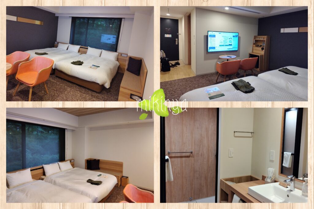お部屋はシンプル。必要最低限の設備で、ベッドは広めです。