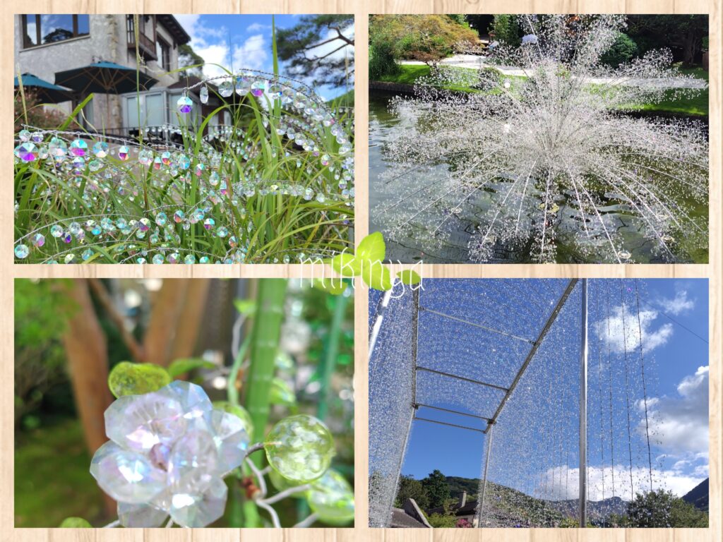 ススキモチーフのガラスのオブジェ、噴水のようなオブジェと、入り口すぐにあるアーチのオブジェがとにかくキラキラと輝いて綺麗です。